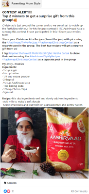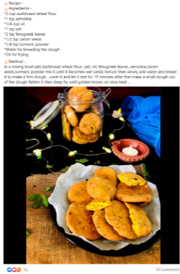 The admins kick started the campaigns in both phases by sharing their own favourite recipes and encouraged members to share their own creations 👨🍳 with the touch of Aashirvaad atta. Members were urged to tag other members, creating further excitement around participation.