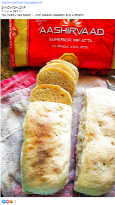 The goal 🎯 of the campaign was to focus on creating conversations 💬 around the benefits of whole grain atta with mineral fortifications and create greater interest via wheat-based recipe contests 🏆. The brand association was strengthened via pack-shots of Aashirvaad atta 📷 with every recipe to build recall amongst the community members.