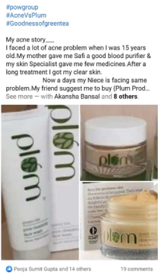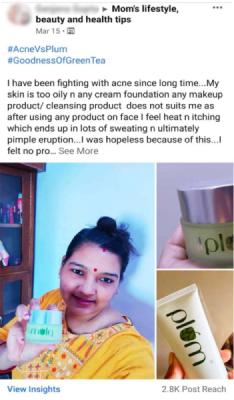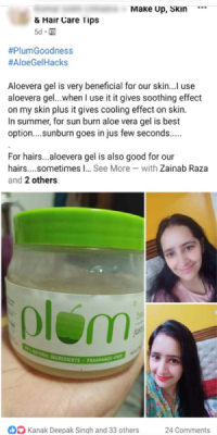 The goal of campaign was to focus on create conversations 💬 around the benefits of green tea, aloe vera & Vitamin E in tackling a host of Skin Care problems like acne, dry & dull skin etc. and then showcase the efficacy of the Plum range with usage-based & before and after photos 📷.